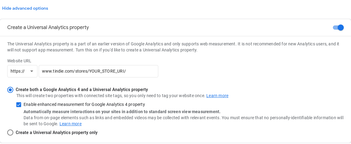 Tindie uses Google Universal Analytics to track site traffic on your store. Therefore you will need a "Universal Analytics Property" in GA.